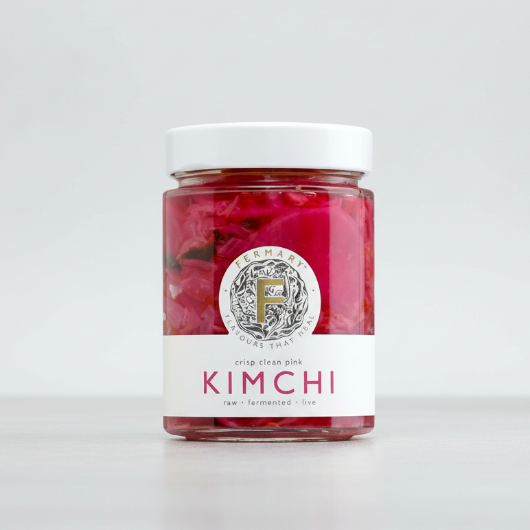 FERMARY Crisp Clean Pink Kimchi is a refreshing and delicately spiced ferment made with fresh cabbage, beetroot and a light blend of aromatics. Naturally vibrant in colour and flavour, it offers a gentle tang with a clean, crisp finish, making it perfect for those who enjoy kimchi with subtle spice and a bright, fresh character.
