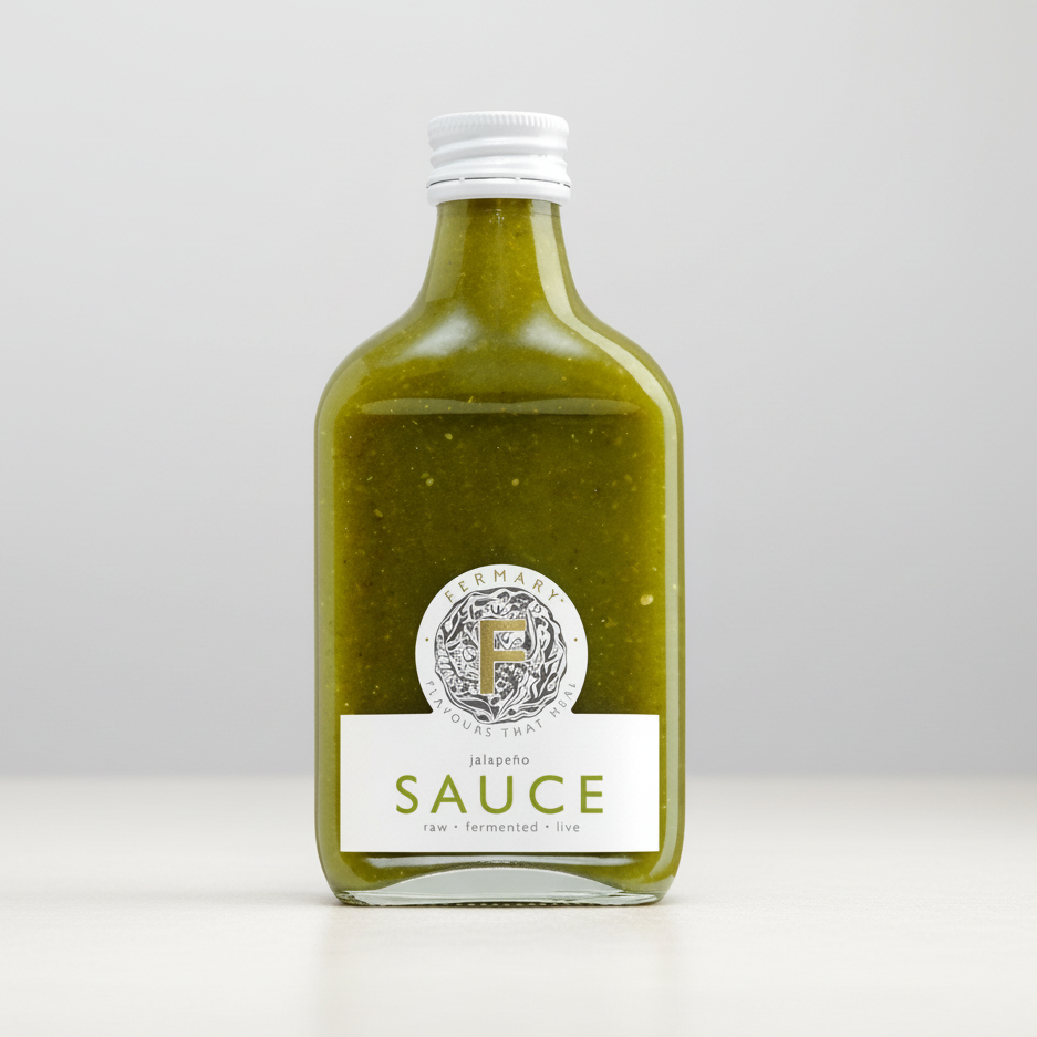 FERMARY Jalapeño Sauce is a vibrant, handcrafted condiment made with fresh green jalapeños, garlic and natural spices for a perfectly balanced kick of heat and flavour. Smooth, tangy and full of character, it delivers a lively burst of spice without overpowering your food, making it ideal for everyday use.