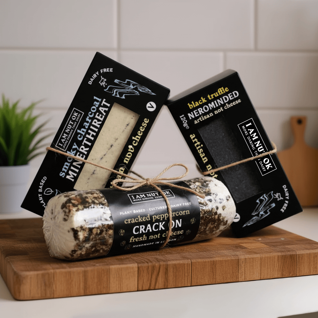Discover the bold world of I Am Nut Okay, where plant-based cheese gets a rebellious twist. daring, flavour-driven cheeses designed to impress vegans and non-vegans alike.